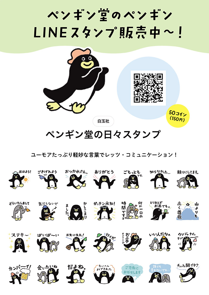 ペンギン堂オリジナルの「LINEスタンプ」販売中!全40種 オリジナルグッズ X Facebook LINE 2026.02.20 ペンギン堂オリジナルLINEスタンプが登場。日常で使いやすいのでぜひ! ペンギン堂の日々スタンプ - LINE スタンプ | LINE STOREペンギン堂のペンギンくんたちの日々をスタンプにしました。